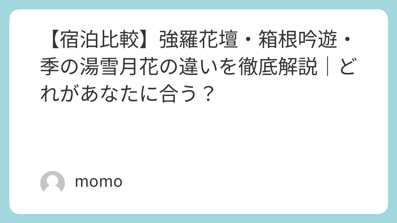 強羅花壇・箱根吟遊・季の湯雪月花を徹底比較して、それぞれの魅力と特徴を紹介します。